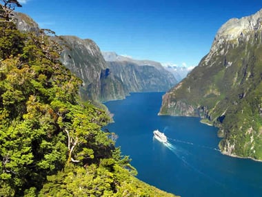 Fiordland National Park is one of New Zealand’s most legendary parks, and, and its largest national park, covering 4,286-square-miles in the southwest corner of the South Island. Here you’ll discover extraordinary scenic beauty, with 14 fiords, including the one of the country’s most famous, Milford Sound.
